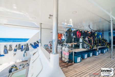 C’est bien sûr avec l’équipe de DIVING ATTITUDE, avec qui j’organise les croisières bio depuis quelques années maintenant, que nous partirons. Et nous retrouverons l’Exocet, magnifique bateau de plongée, qui a bénéficié d’un lifting récent, le rendant à la pointe de ce que l’on peut attendre lors d’une croisière. Je vous laisse le (re)découvrir avec quelques superbes photos réalisées par Andy Parant :