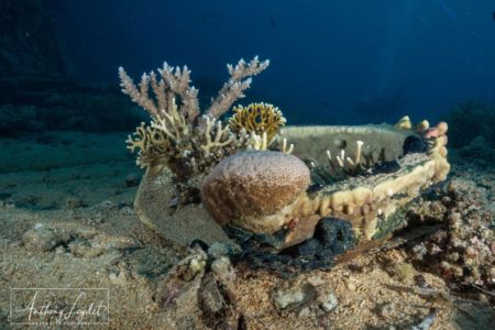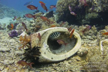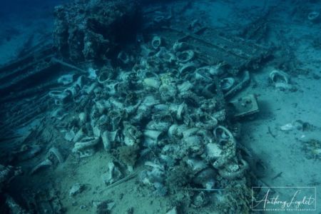 La pinacle Ouest tire son nom du navire qui a coulé en 1980, le Yolanda, qui transportait des sanitaires. L’épave a dégringolé au-delà de 100m mais une bonne partie du chargement est resté échoué sur une vingtaine de mètre de fond. On retrouve ainsi des cuvettes de toilettes, des baignoires ou encore des vasques en céramique. Il n’est pas rare de voir quelques plongeurs se faire prendre en photo assis sur un des toilettes consacré à la photo souvenir !