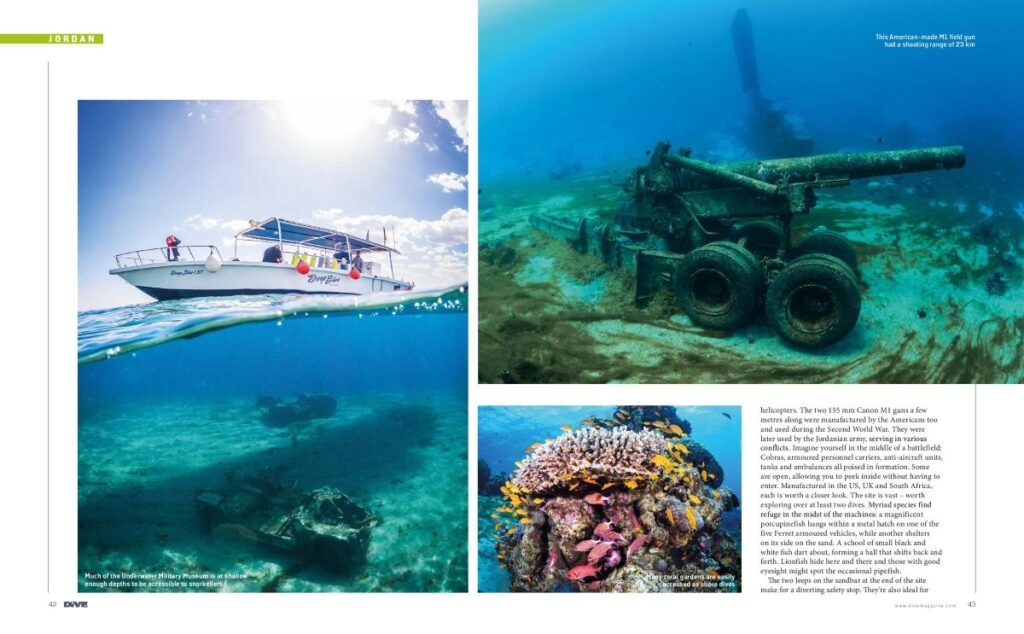 DIVERS FOR THE ENVIRONMENT (Emirates Diving Association) Juin 2022 – Reportage sur la plongée à AQABA en Jordanie et le Musée Militaire Sous-marin (6 pages)