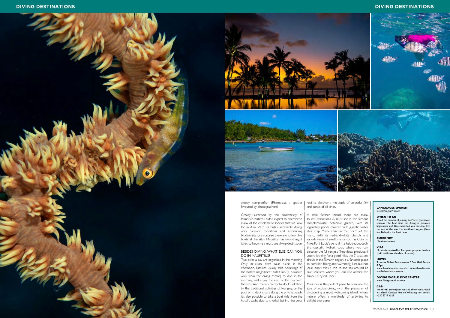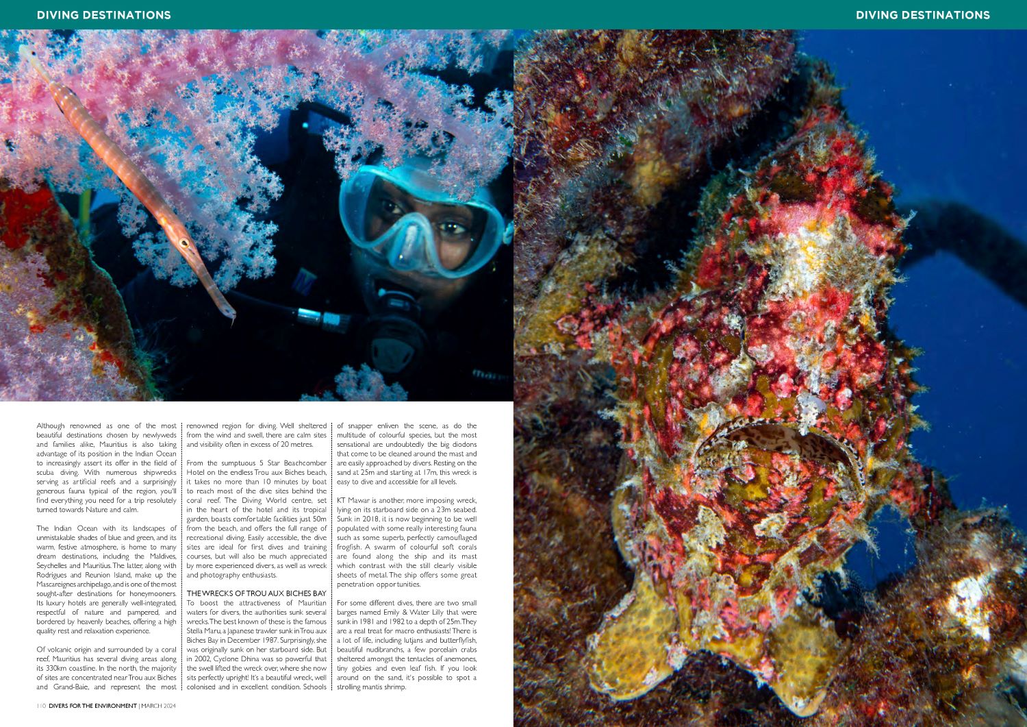 UAE – DIVERS FOR THE ENVIRONMENT (Emirates Diving Association) Mars 2024 – Reportage sur la plongée à l’île MAURICE (8 pages)