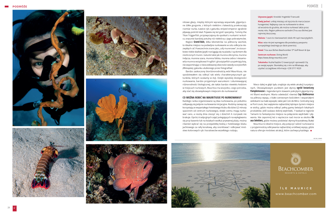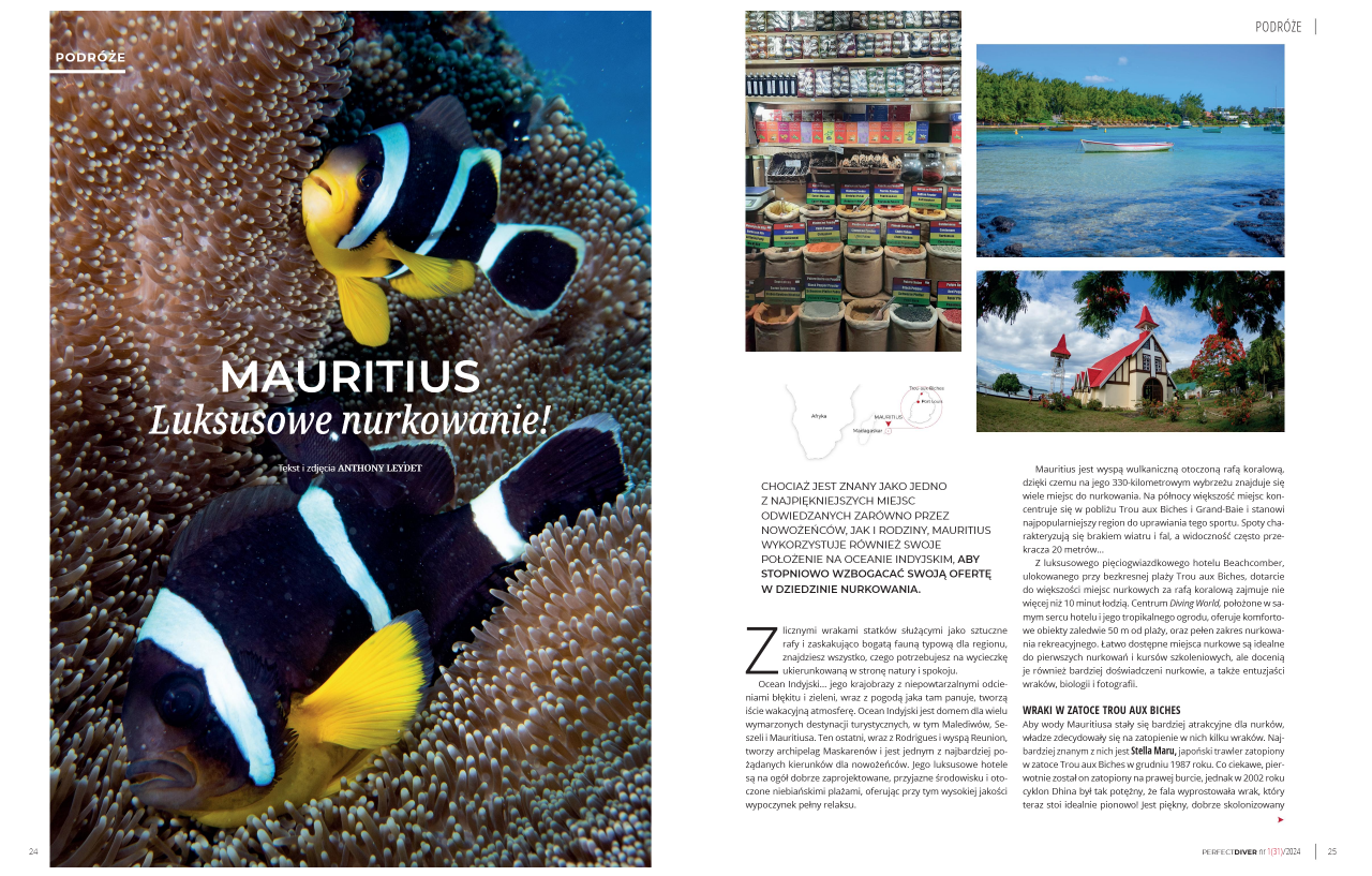 POLAND – PERFECT DIVER #31 Fev 2024 – MAURITIUS – Luksusowe nurkowanie ! (6 pages texte et photos)