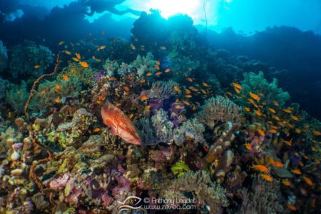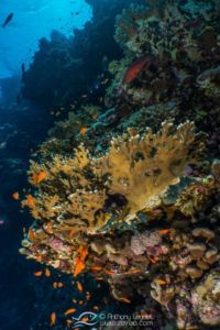 De par son éloignement, Daedalus reste très bien protégé de l’affluence de plongeurs que l’on peut avoir sur certains autres sites, et offre une vision de la Mer Rouge sous son meilleur angle. Bien que perdu au large, la vie y abonde, attirée par les récifs coralliens tout simplement exceptionnels. Les tombants sont recouverts de coraux en tout genre, aussi bien durs que mous, avec les alcyonaires, aussi appelés coraux « broccolis ». Ces récifs bouillonnent de vie, et c’est une véritable explosion de poissons que l’on peut observer dans chaque recoin. Des milliers d’anthias virevoltent au-dessus des patates coralliennes. Les mérous, plus ou moins gros selon les espèces, mais tous plus colorés les uns que les autres, regardent passer impassiblement les plongeurs, ou se faufilent de trou en trou.