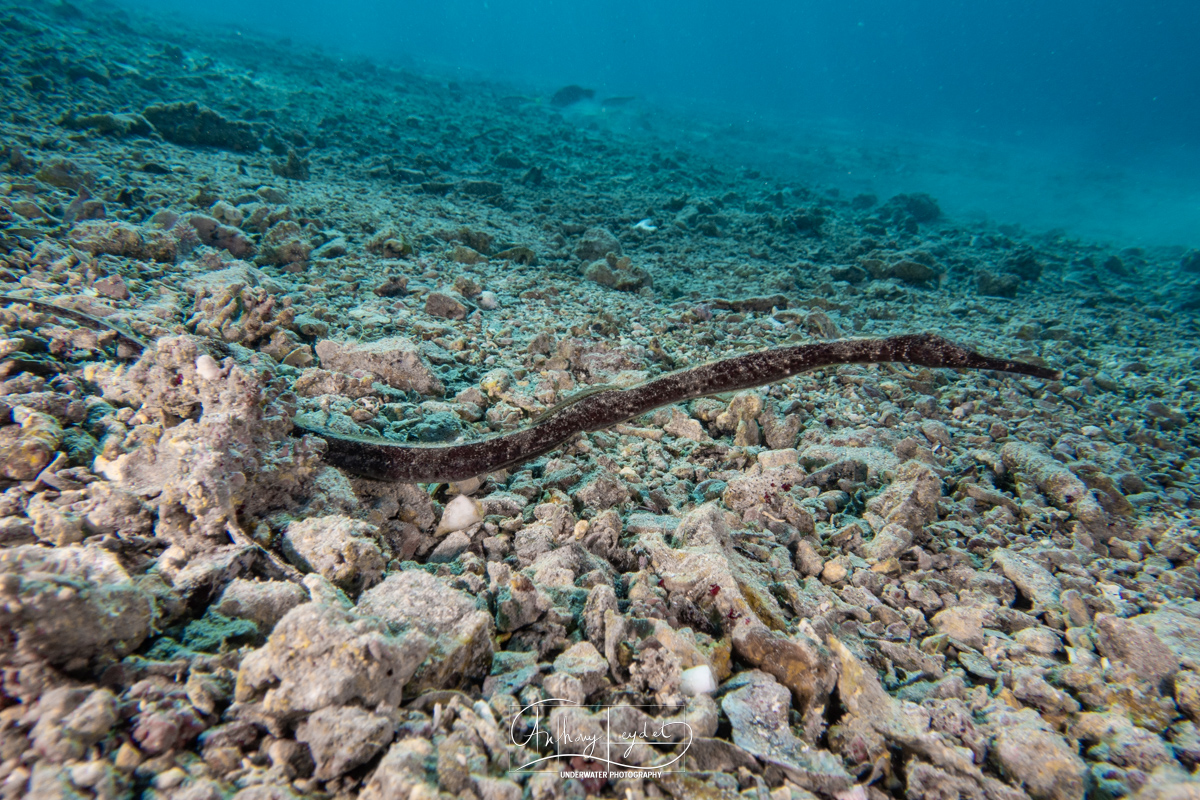 Quelques minutes plus tard, nous voilà parés à nous immerger. Après une petite séance de palmage (ça fait toujours du bien), on plonge dans le bleu après avoir dépassé le petit îlot. La première photo sera pour un beau spirographe au milieu de l’herbier.