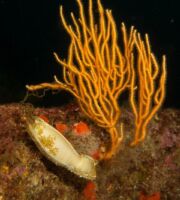 Être camouflé, c’est d’ailleurs l’option choisi par de nombreuses espèces vivant dans les gorgones, développant alors des mimétismes bluffant de réalisme. En Méditerranée, le minuscule nudibranche appelé « Tritonia des gorgones » en est un parfait exemple. Bien difficile à débusquer, il est plus simple de trouver sa ponte. Il s’y trouve en général à proximité et s’enroule souvent autour d’une ramure. De couleur blanche, jaune ou rose clair, selon la couleur de la gorgone hôte, ses papilles dorsales ressemblent à s’y méprendre aux polypes des gorgones !