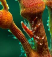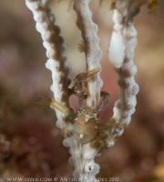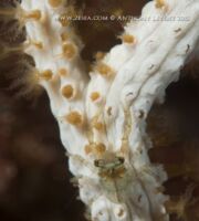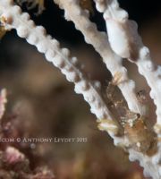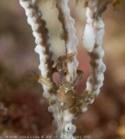 Mais le plus captivant apparaît lorsque l’on se penche d’un peu plus près, et que l’on vient s’immiscer au creux des ramures. Oublions un instant l’immensité de la mer, et focalisons-nous à une échelle beaucoup plus réduite où un monde étrange et singulier se manifestera avec un peu d’attention. Armez-vous de patience et si possible d’une bonne vue. Car les gorgones sont le refuge de toute une multitude d’espèces, plus ou moins extravagantes, et parfois bien difficiles à discerner.